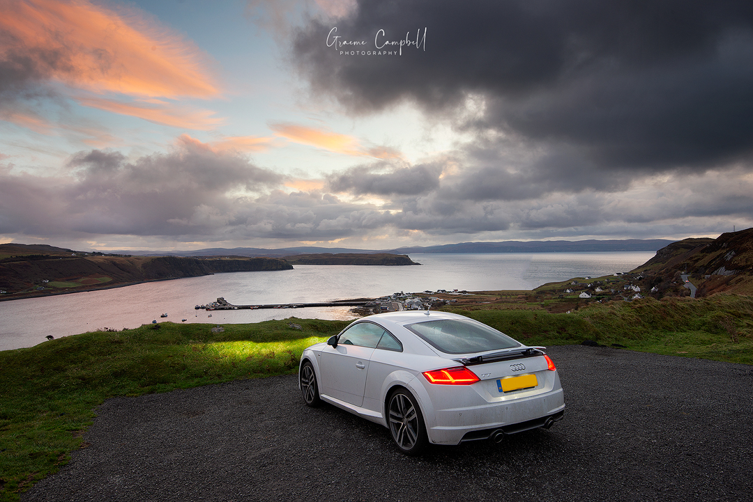 My old photowagen the Audi TT. Taken looking down on Uig in te Isle of Skye.